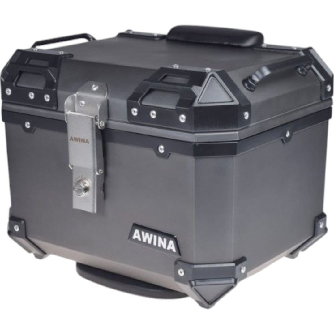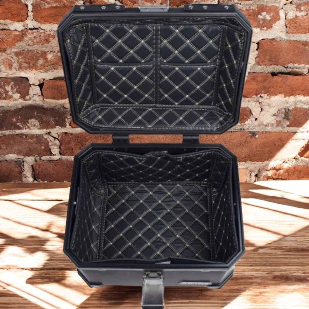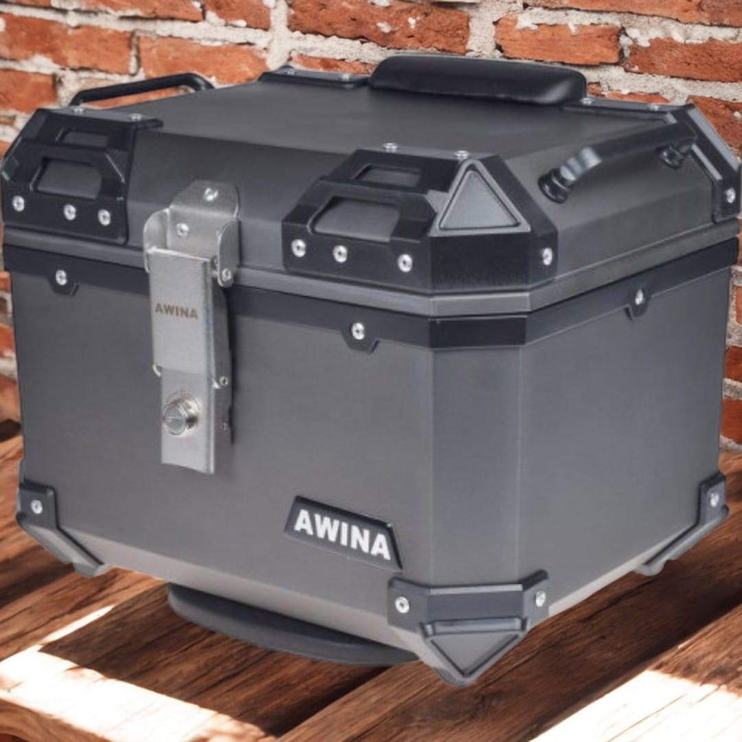 - Estetyczny Design: Kufer jest utrzymany w estetycznym, szarym kolorze, co pozwala mu doskonale komponować się z różnymi rodzajami motocykli i stylami. Wnętrze kufra wyłożone wyściółką co umożliwia bezpieczny transport kasków i innych, delikatnych przedmiotów