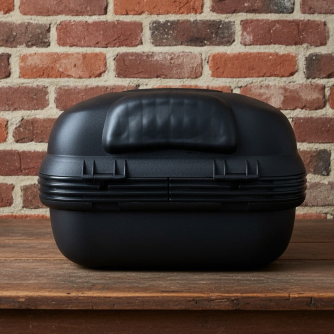 ✔ Estetyczny Design: Kufer jest utrzymany w estetycznym, czarnym kolorze, co pozwala mu doskonale komponować się z różnymi rodzajami motocykli i stylami.