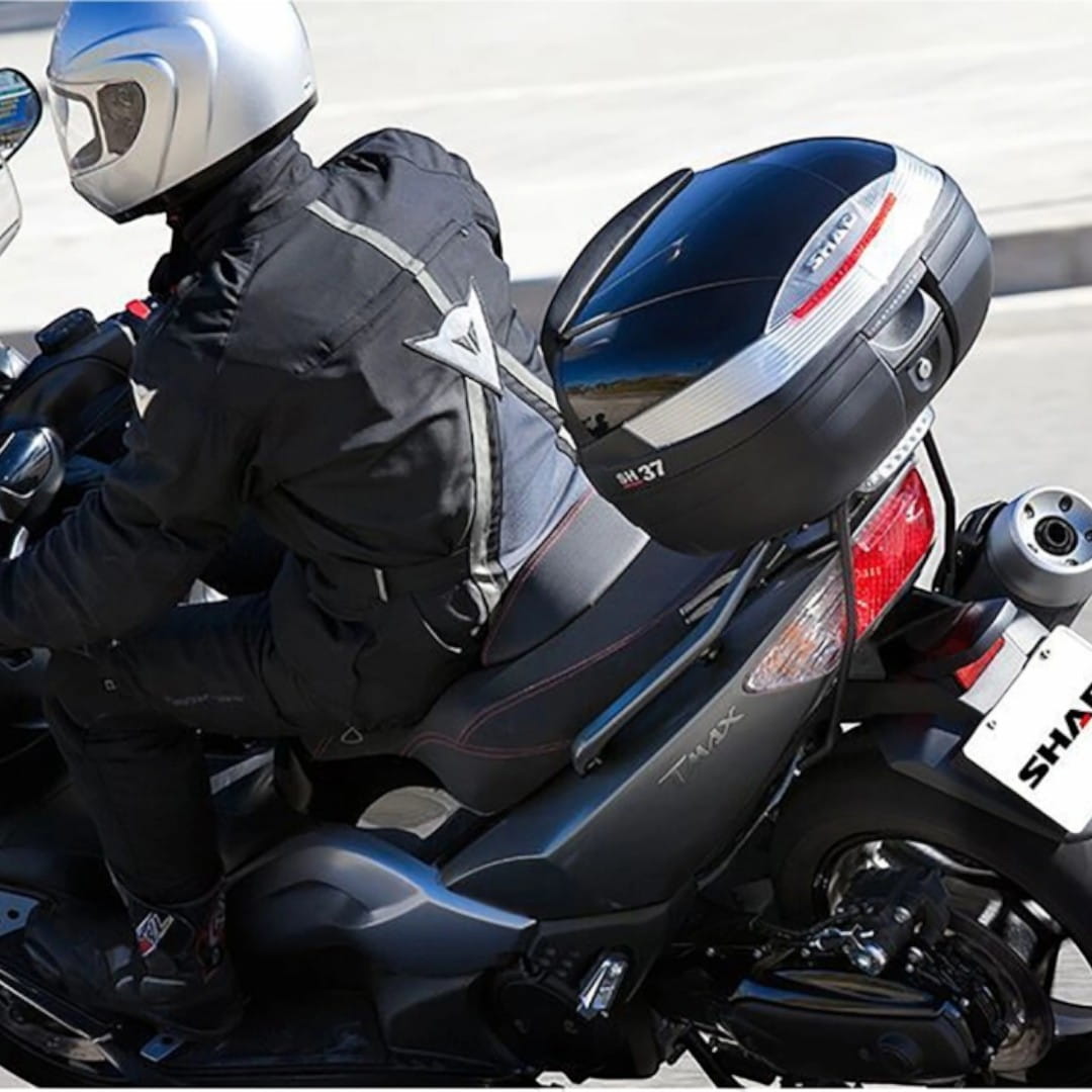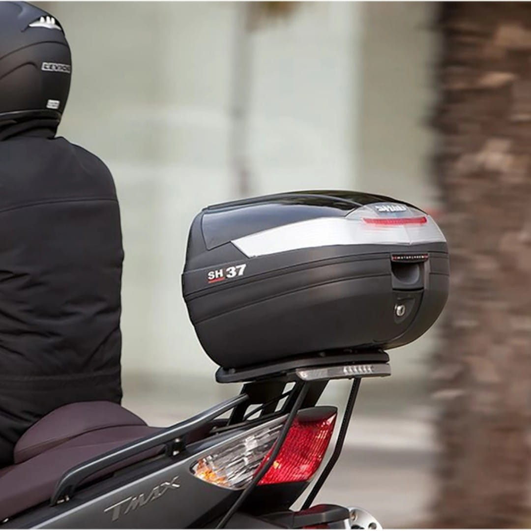 ✔ Pojemność 37 L - Wystarczająco Dużo Miejsca: Z pojemnością 37 litrów, kufer oferuje wystarczająco dużo miejsca na przechowywanie drobiazgów, a także umożliwia bezpieczne przechowywanie jednego kasku integralnego lub 2 kasków typu Jet.
