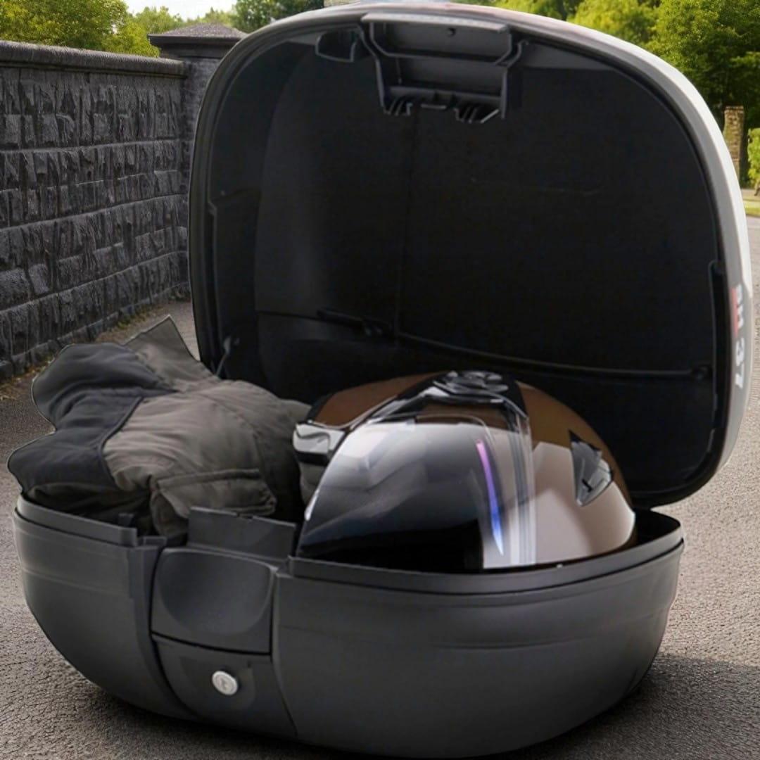 ✔ Pojemność: Pllastikowy kufer motocyklowy jest idealnym rozwiązaniem dla tych, którzy potrzebują praktycznego miejsca na przechowywanie jednego kasku. To wygodne i funkcjonalne rozwiązanie dla podróżujących motocyklistów.
