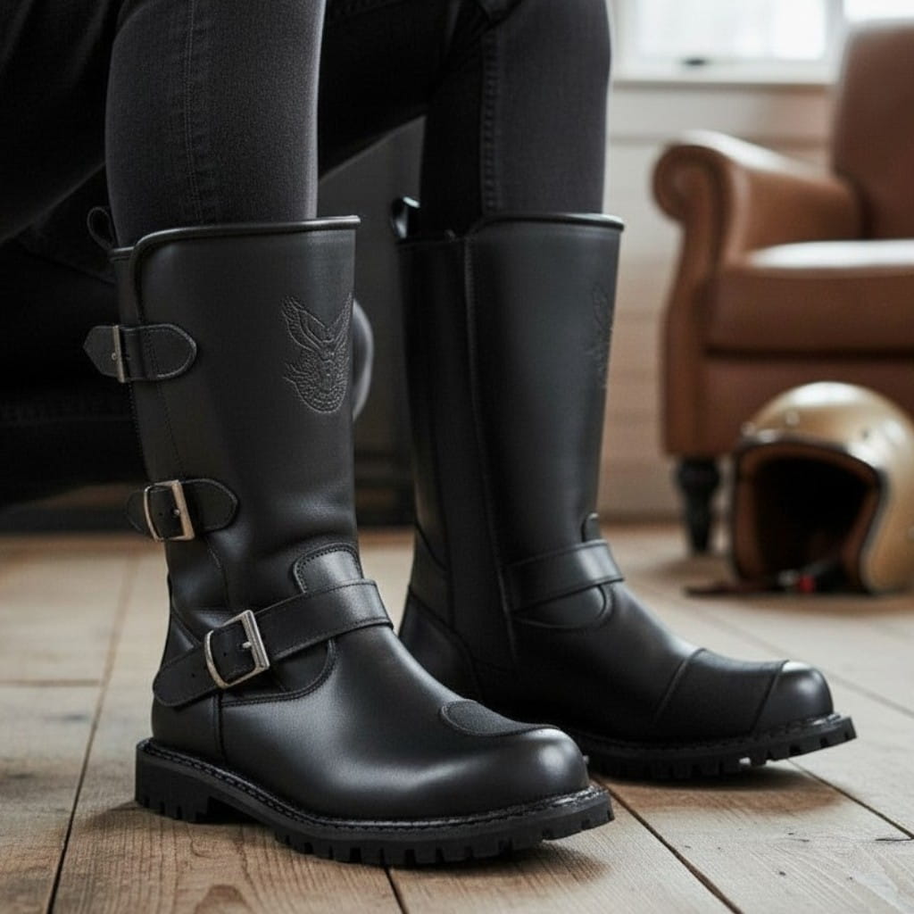 Deszcz na trasie? Z technologią Te-Por i atestowaną skórą ProSpeed to żaden problem. Długa podróż na chopperze to często test nie tylko dla maszyny, ale i Twojego ekwipunku. Przemoczone buty to koniec frajdy z jazdy. Jako polska firma i bezpośredni producent ProSpeed, stworzyliśmy model, który stanowi barierę nie do przebicia dla wody. Wyobraź sobie poranny wyjazd – chłód i deszcz. Dzięki zastosowaniu certyfikowanej membrany Te-Por oraz naturalnej, atestowanej skóry wodoodpornej, Twoje stopy pozostają suche i bezpieczne. Wysoka konstrukcja (30 cm) osłania całą łydkę, a system 3 klamer gwarantuje idealne dopasowanie. To buty dla motocyklisty, który nie chce rezygnować z trasy z powodu pogody.
