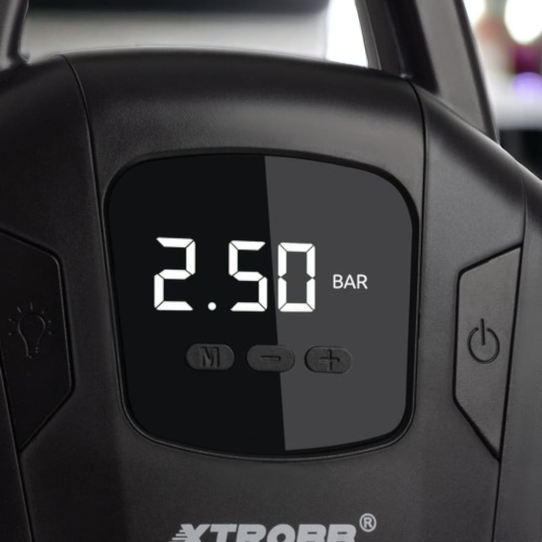 - WYRAŹNY WYŚWIETLACZ LCD: kompresor samochodowy posiada wyświetlacz LCD. Z wyświetlacza odczytasz ciśnienie (w 2 jednostkach PSI i BAR) co pozwala na jego aktualnego monitorowanie w oponach oraz ustawianie maksymalnej wysokości odpowiedniej dla Twoich opon. Znacznie ułatwia to precyzyjne pompowanie.