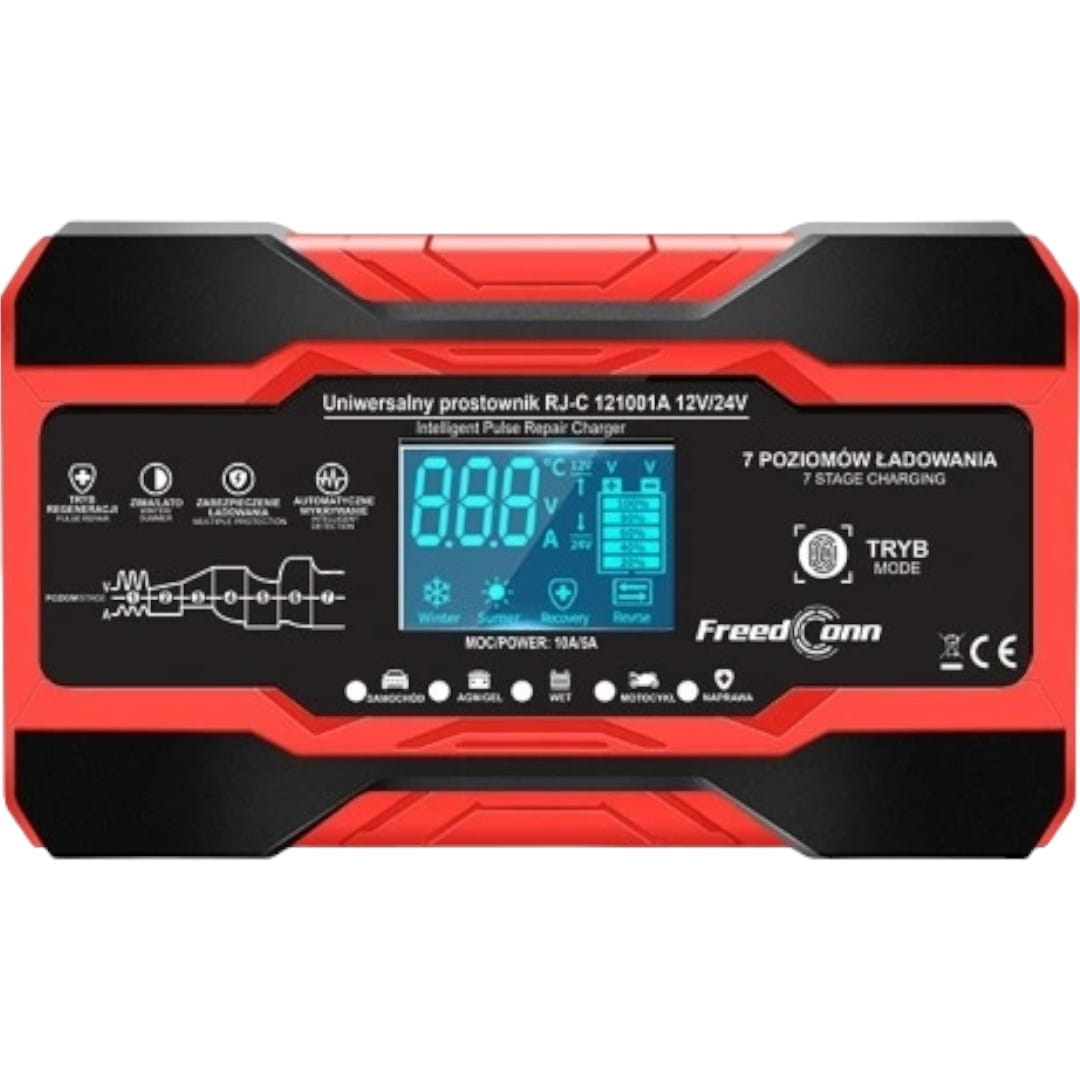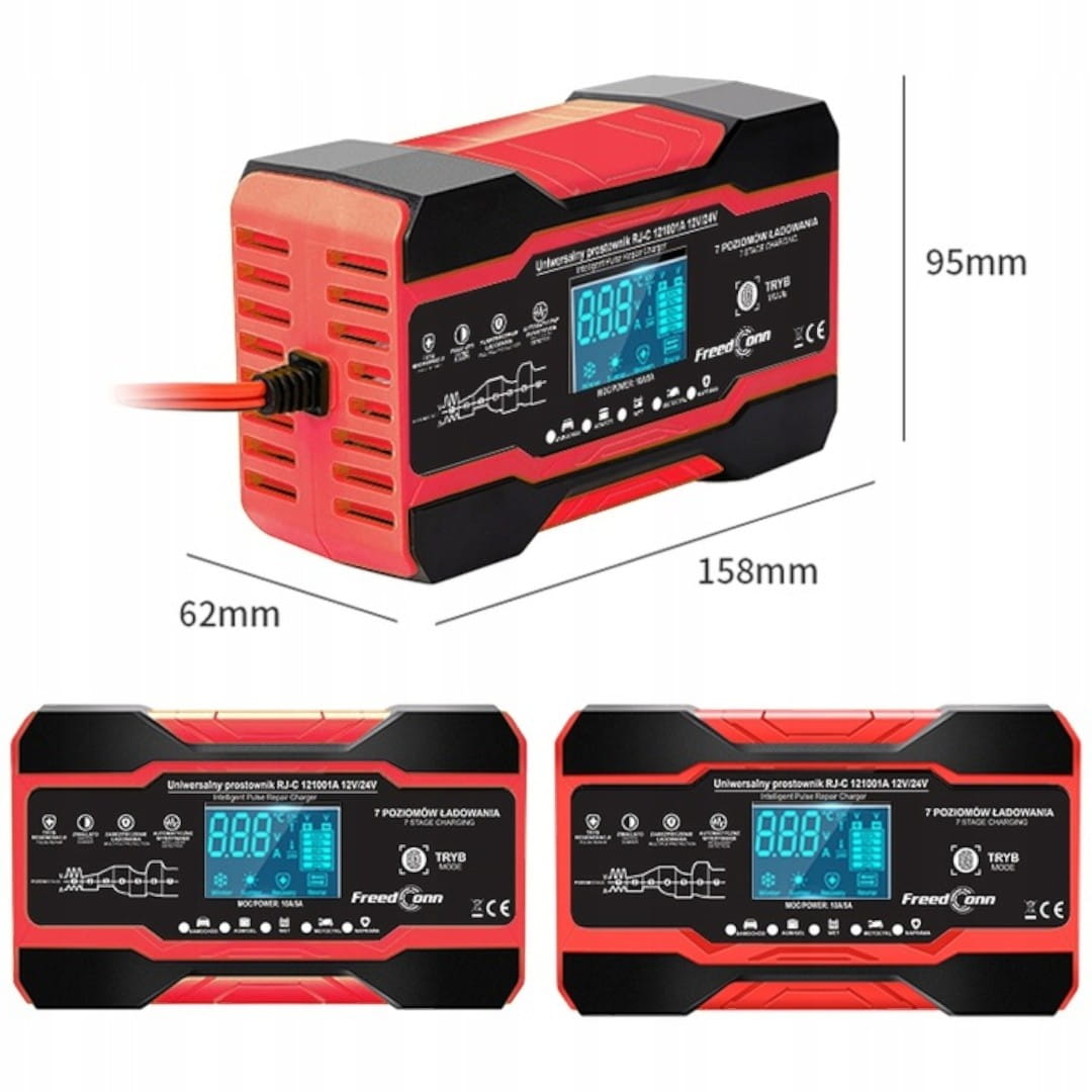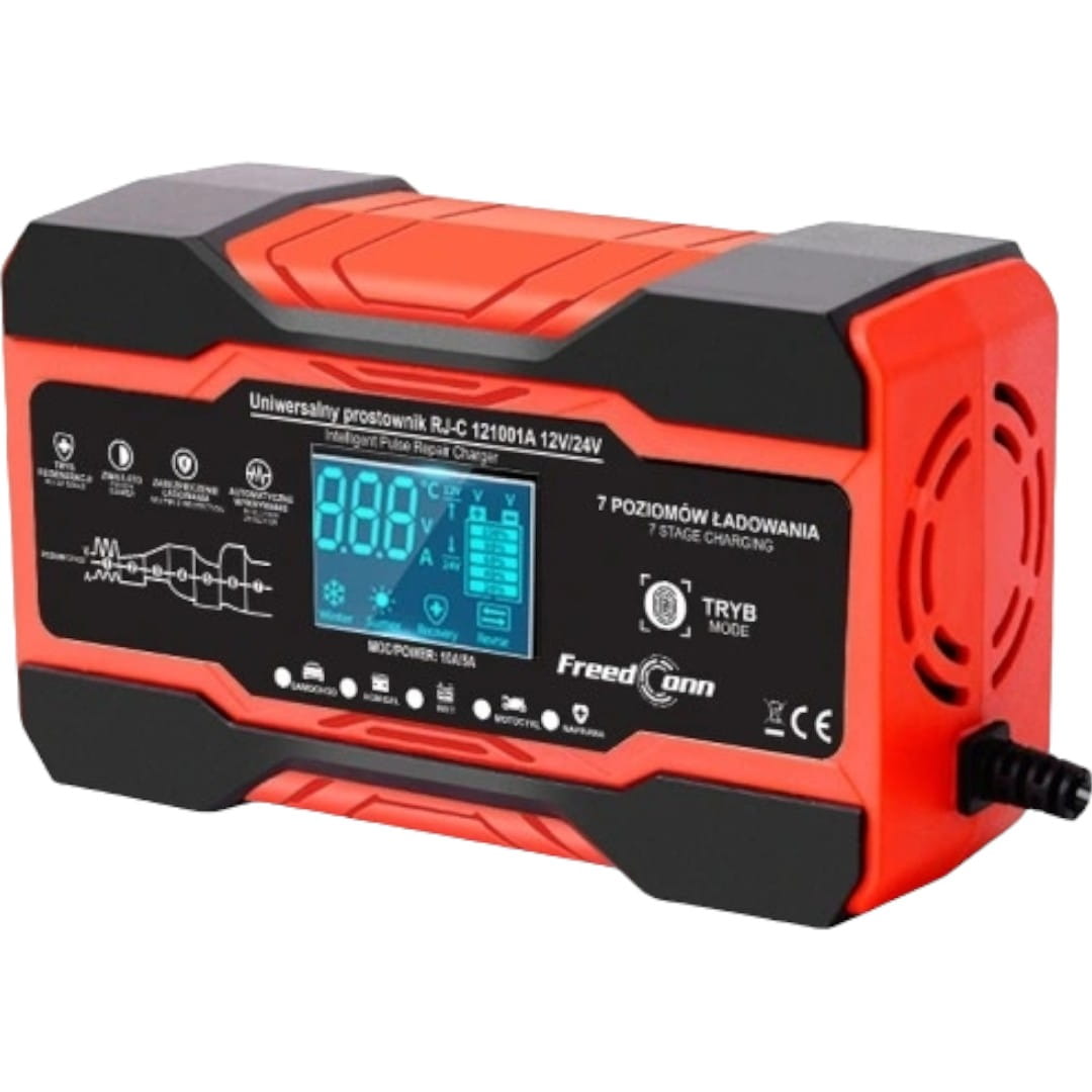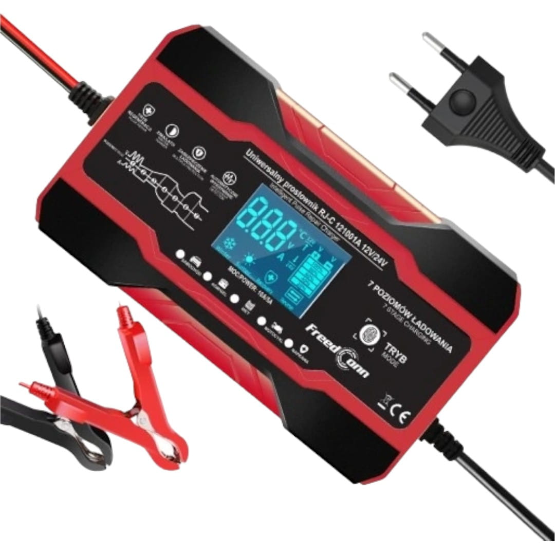 Prostownik wykonany został z wysokiej jakości materiałów, dzięki czemu cechuje się trwałością i długowiecznością. Zastosowane zabezpieczenia prądowe i termiczne zwiększają bezpieczeństwo korzystania z ładowarki, a funkcja regeneracji akumulatora pozwala na wydłużenie jego żywotności. Zwróć uwagę że ten prezentowany akumulator generuje natężenie prądu nawet do 10A, gwarantuje to szybkie naładowanie każdego akumulatora 12Vi 24V