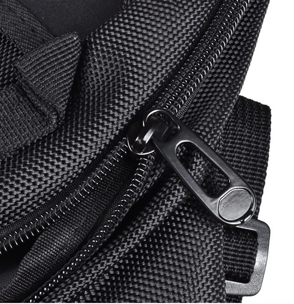 Wodoodporne Zamki Dwustronne: Twoje rzeczy osobiste pozostaną suche nawet podczas niespodziewanego deszczu. Dwustronne suwaki pozwalają na wygodną obsługę saszetki w rękawicach motocyklowych.