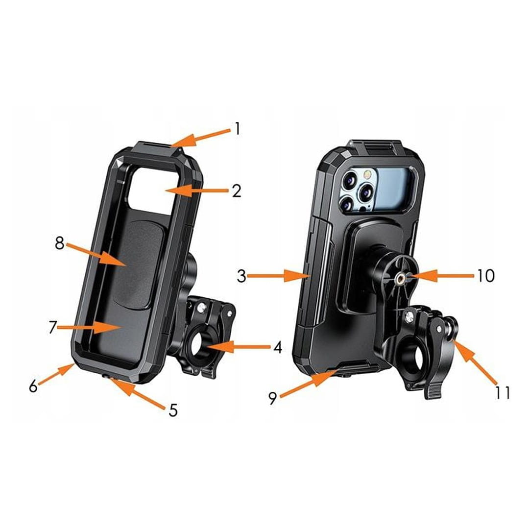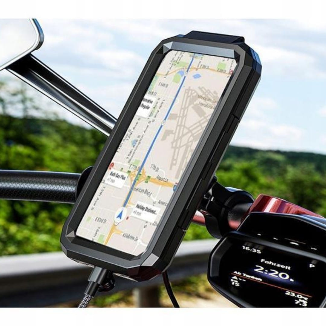 - Połączenie wodoodpornego uchwytu na telefon zapewniające wygodę i bezpieczeństwo podczas podróży.