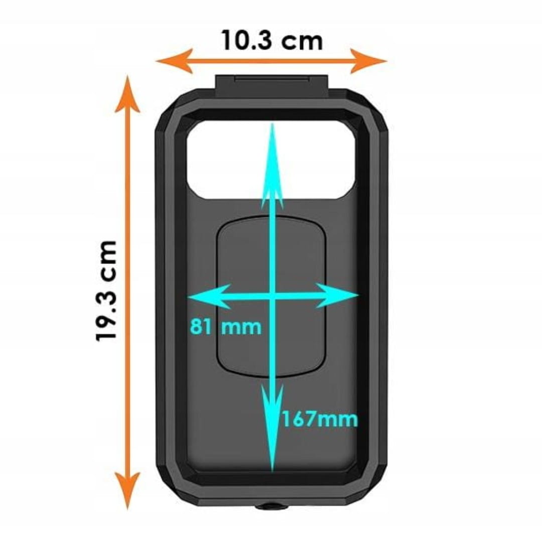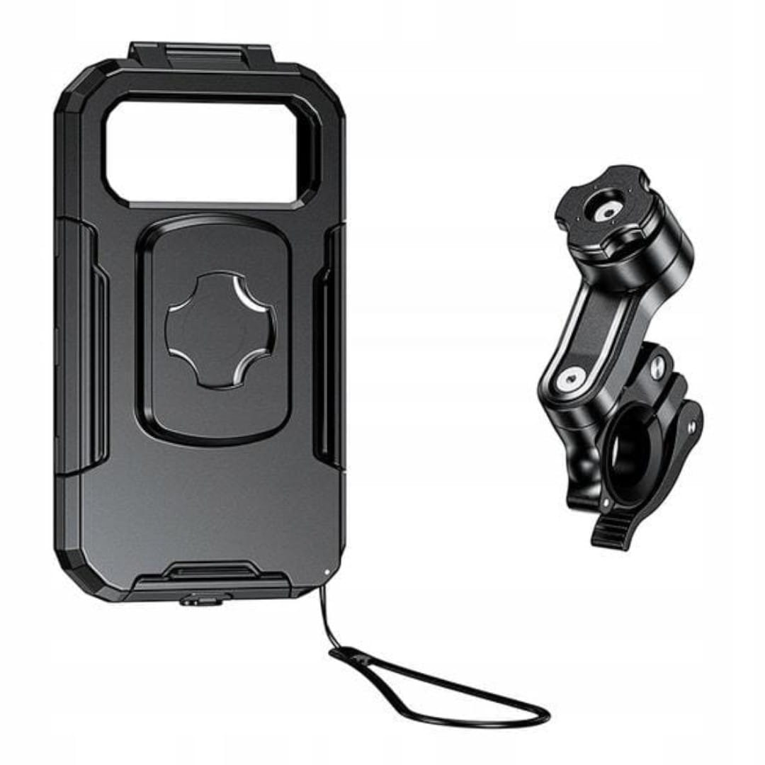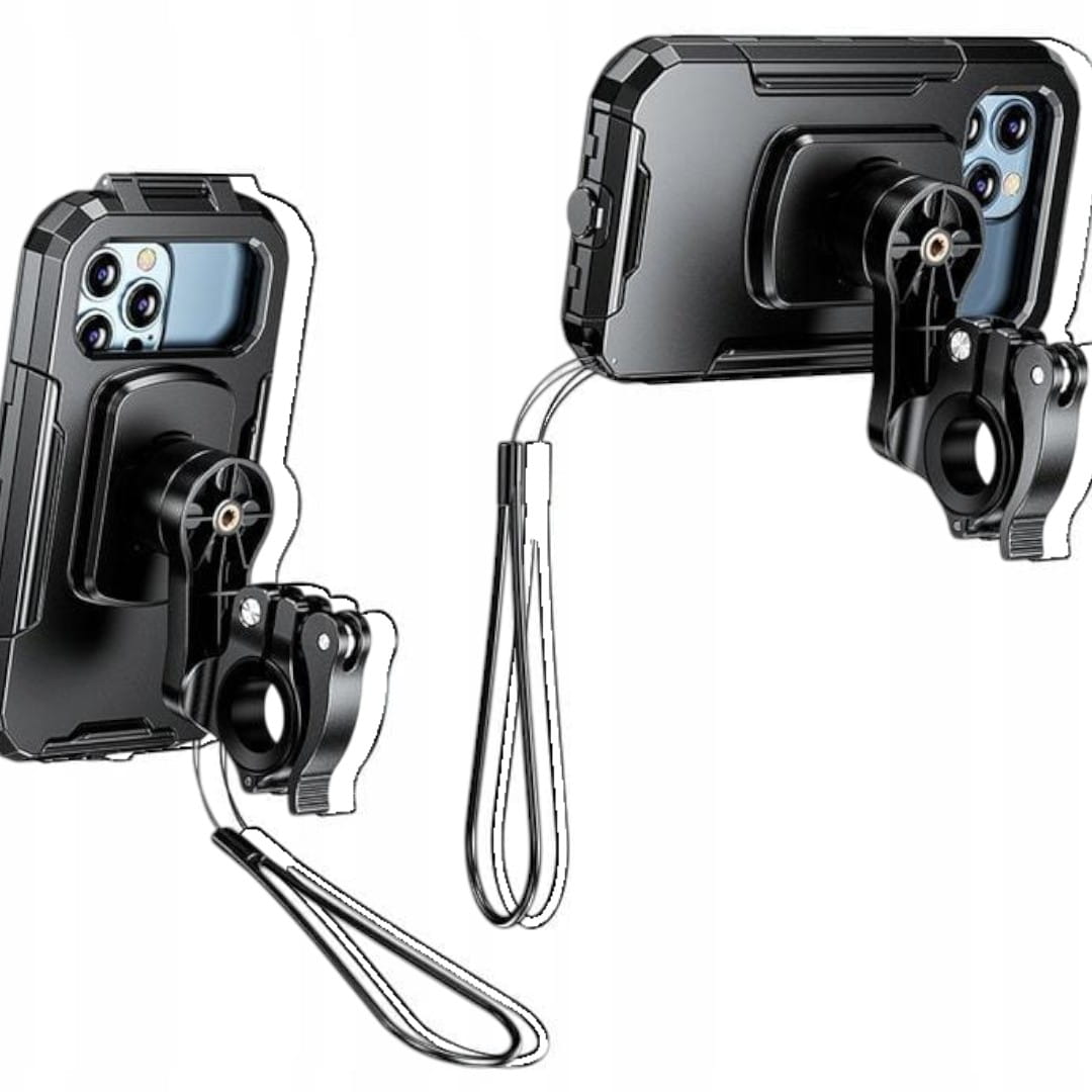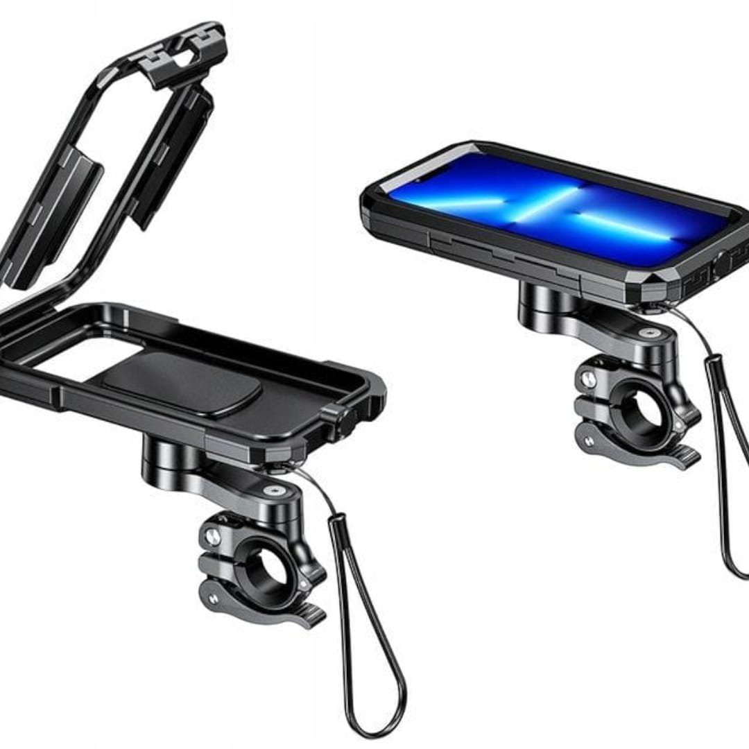 - Uchwyty są wodoodporne i posiadają wewnętrzną membranę, chroniącą telefon przed deszczem, zachlapaniem i kurzem. Choć nie są całkowicie wodoszczelne, zapewniają skuteczną ochronę podczas większości warunków pogodowych.