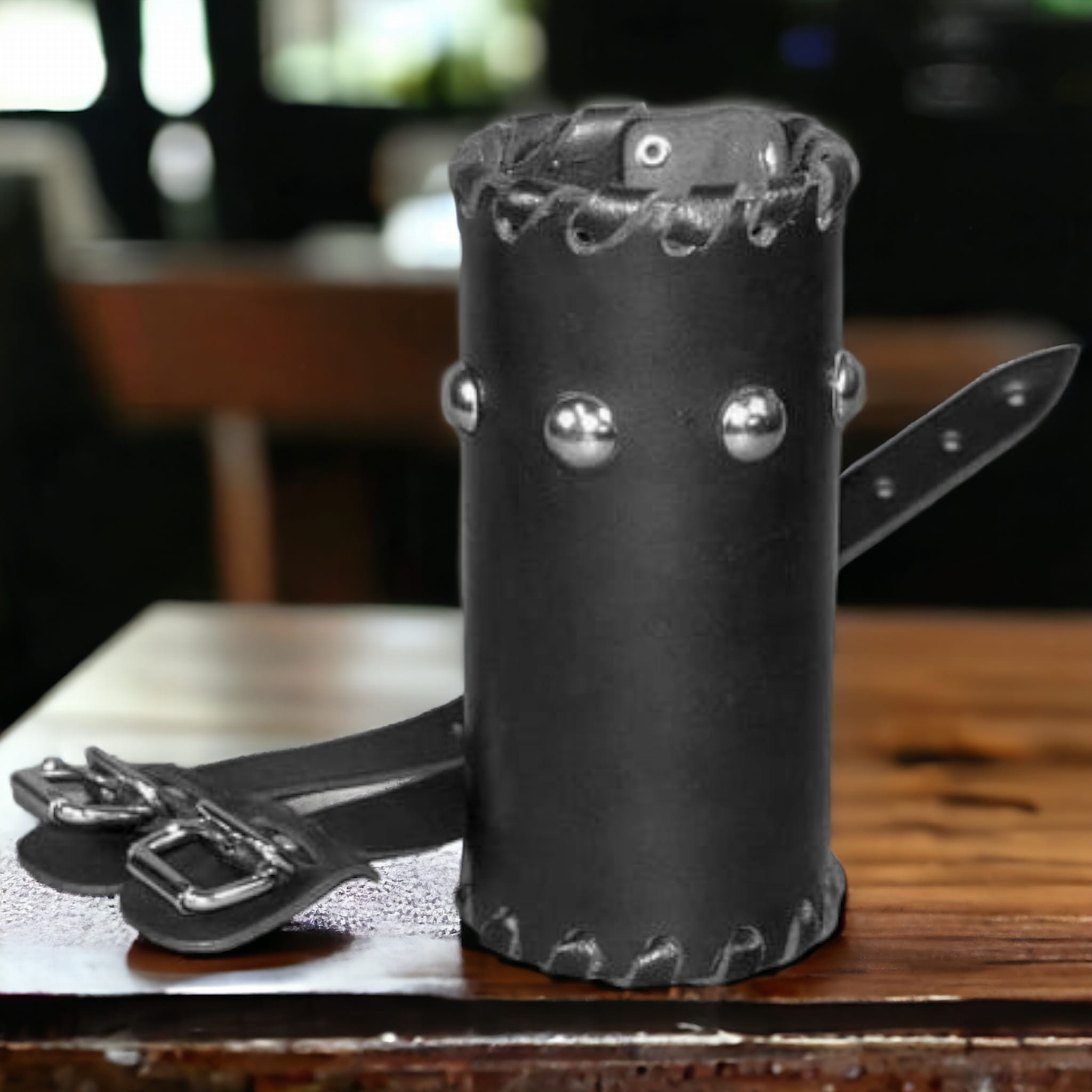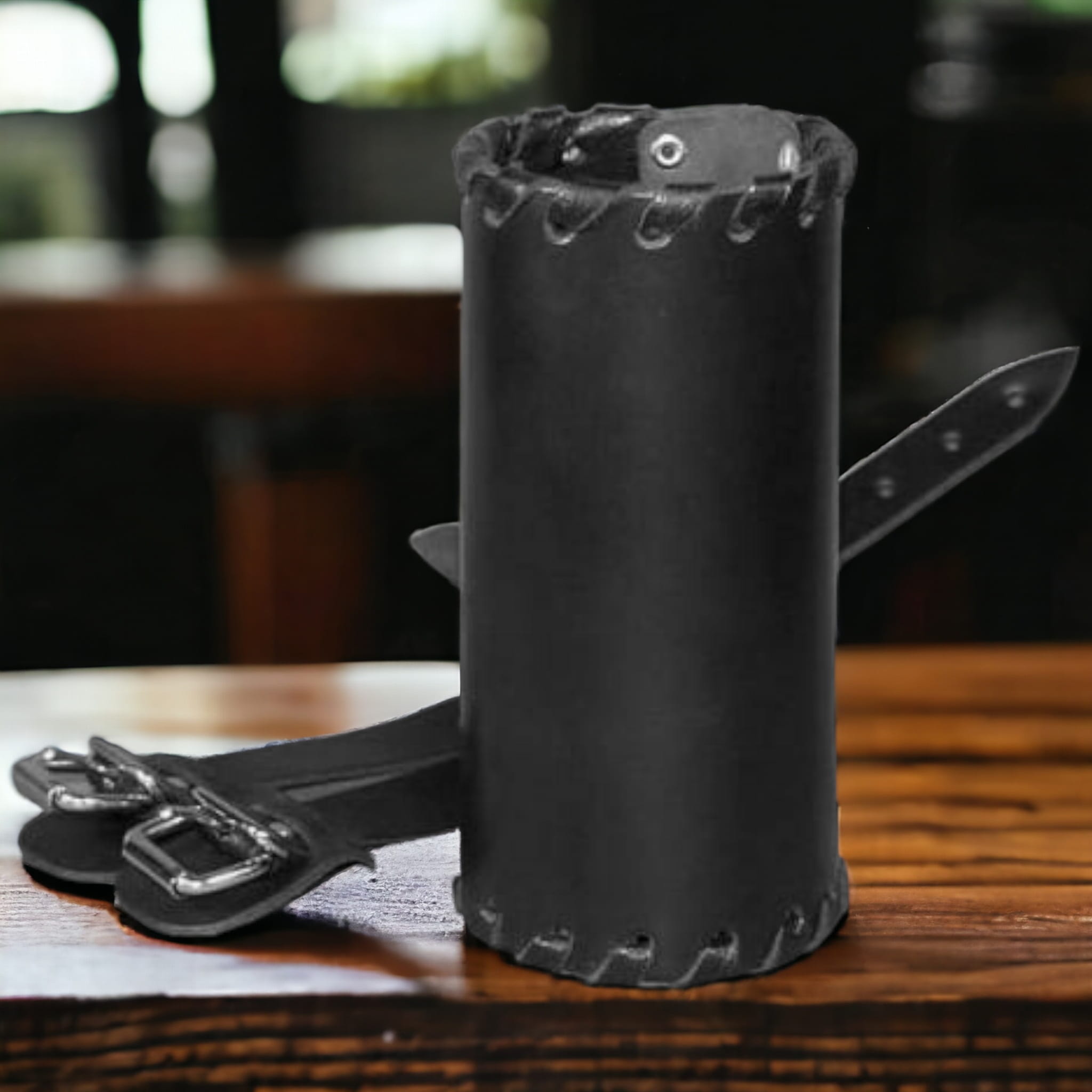 Uchwyt Skórzany Motocyklowy Czarny na Butelkę