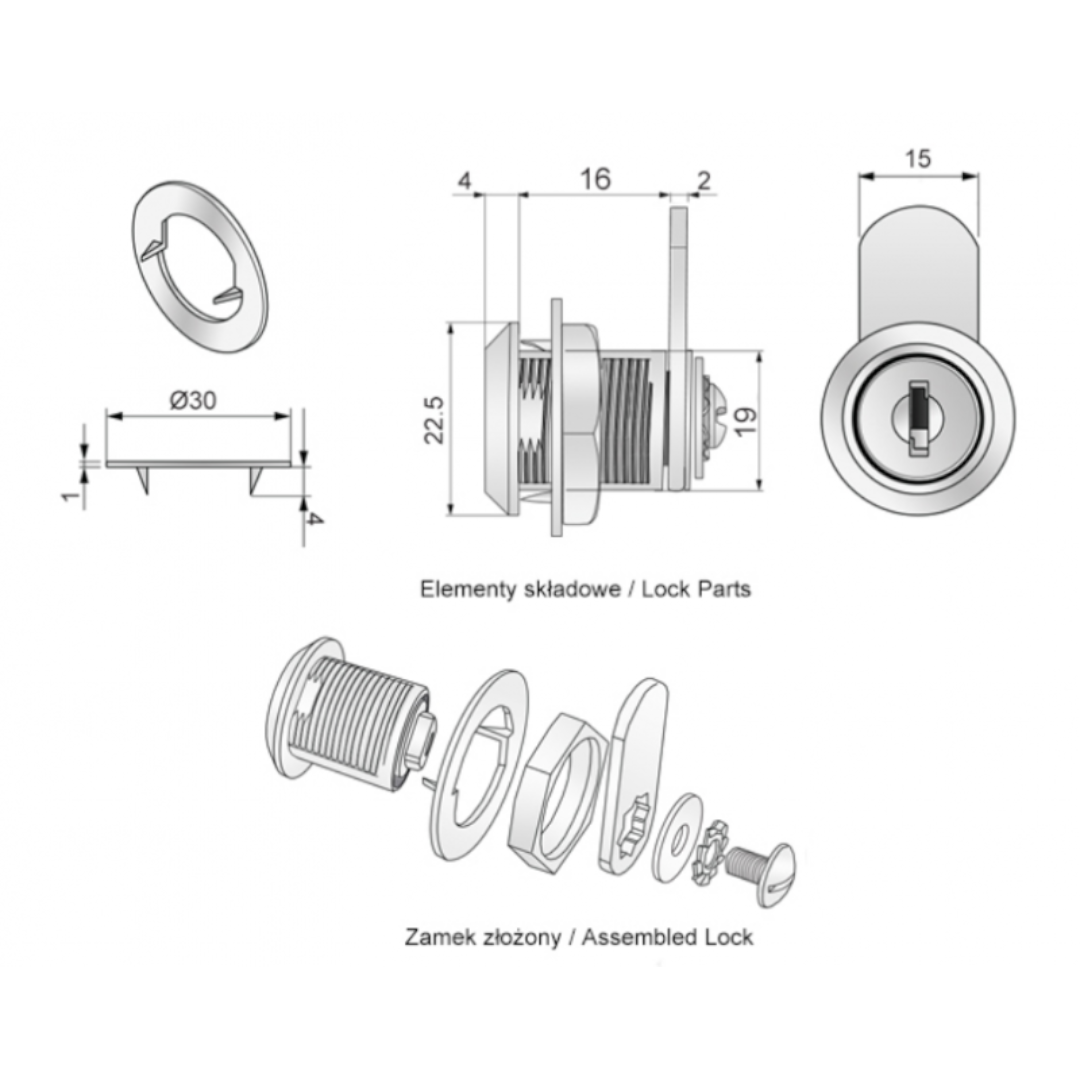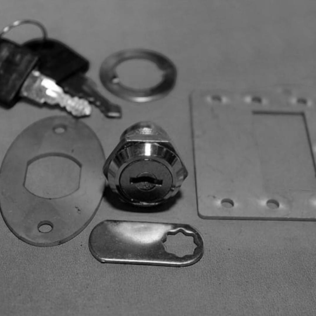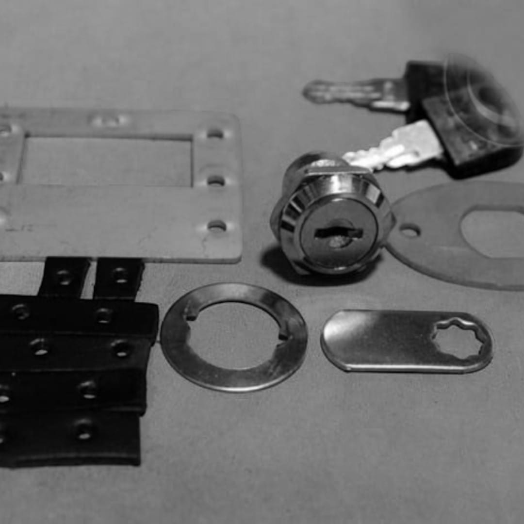 - Chromowany, stalowy zestaw do montażu zamka do kufra