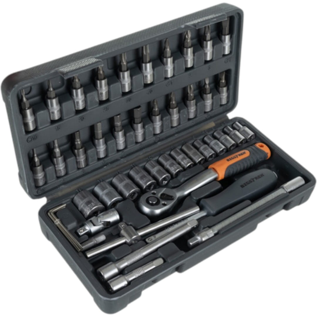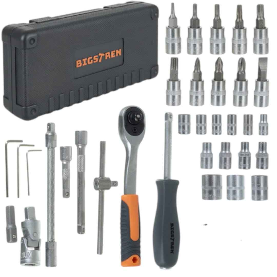 Zestaw narzędzi 46 el. to kompaktowy i praktyczny komplet do szybkich napraw domowych, serwisowania roweru, prac przy samochodzie i montażu mebli. Wszystkie nasadki, bity i akcesoria wykonane z trwałej stali CrV przechowywane są w poręcznej walizce, która utrzymuje idealny porządek i zapewnia gotowość do działania w każdej chwili.